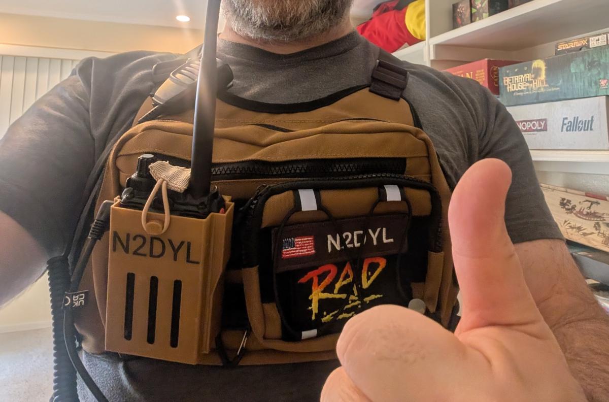 Interested in one for yourself? Reach out to me with an email and I can 3D print you one with your call sign on it like I've done here. I can also set yours up for Molle or belt loops or whatever configuration you would find the most useful.