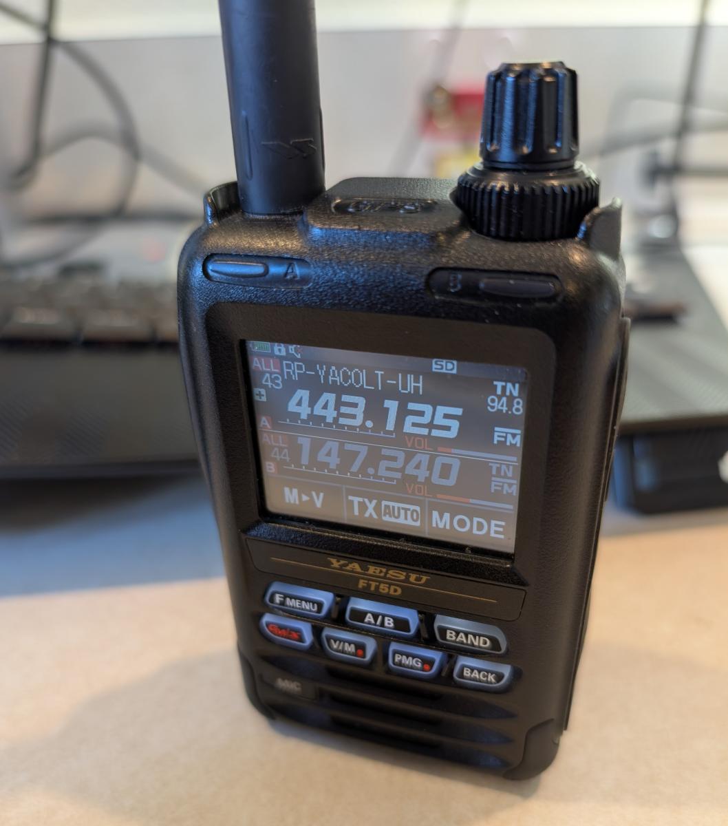Automatic Digital Tx. So there's a lot to know about digital signal and various models and standards... which can be multiplied by having to know which repeaters do or do not allow digital. The Yaesu FT-5DR however has an automatic mode where it can detect for you if it can use digital with a given repeater and it seamlessly navigates the process for you which is pretty rad!